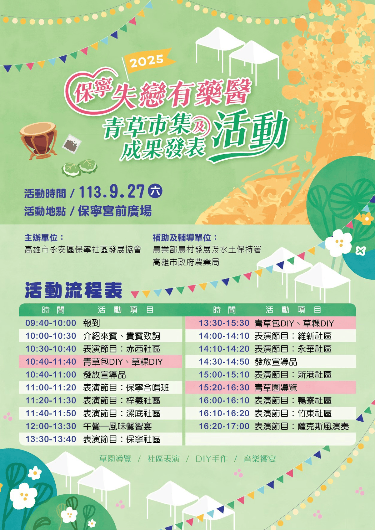 |內容|青草市集、青草包DIY、表演活動、風味饗宴、青草園導覽