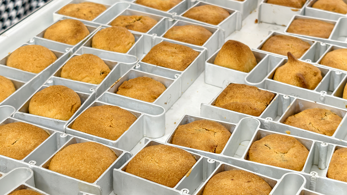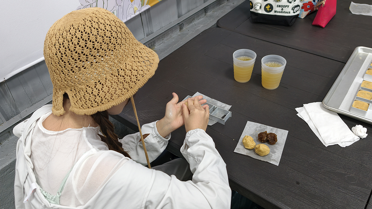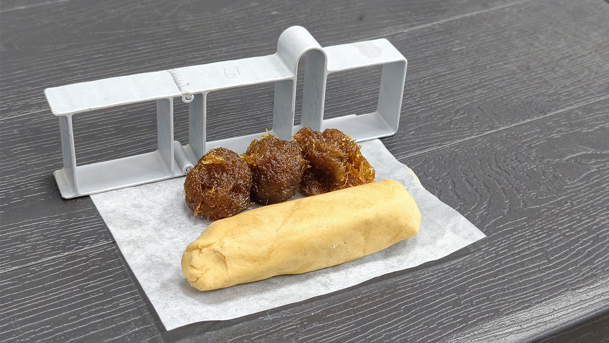 將內餡包入麵糰中,再塞入模具中即可完成,看似簡單,但做起來還是要有點技巧呢!