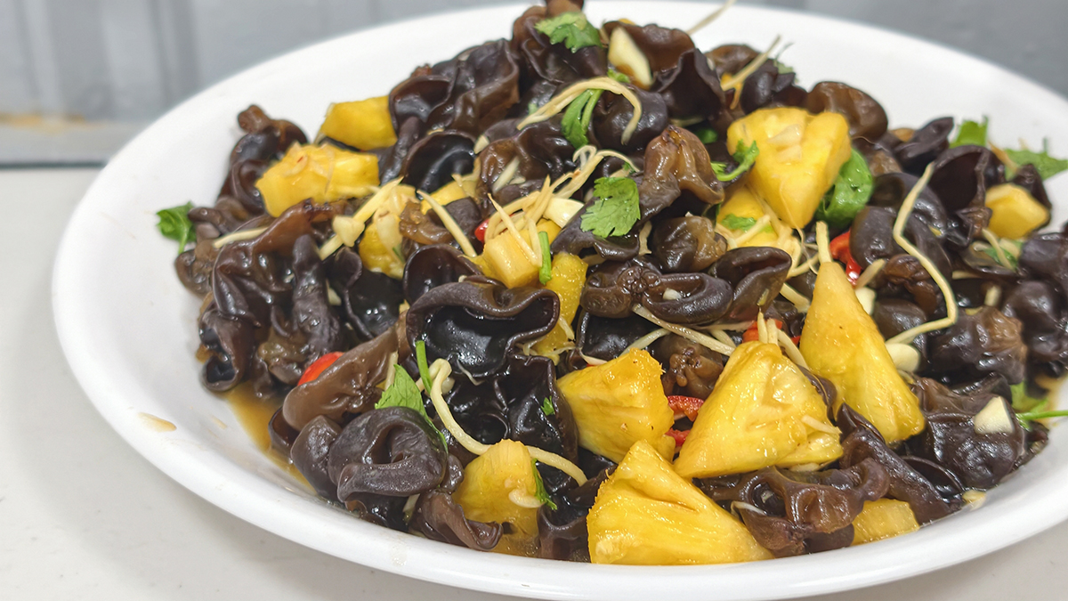 聽完鳳梨小知識、做完點心鳳梨酥,當然要來好好品嚐鳳梨主題午餐!農場特別設計了「鳳梨七品料理」,從前菜、主餐到湯品,樣樣都有鳳梨入菜,層次豐富又不失清爽。像是鳳梨粉絲蝦、鳳梨涼拌木耳、鳳梨醬蒸魚、鳳梨糖醋雞、鳳梨焗雞翅、鳳梨醬嫩薑蒸肉丸、鳳梨排骨湯等,每道菜都將鳳梨的酸甜轉化成一道道創意料理,讓人驚喜連連,胃口大開!