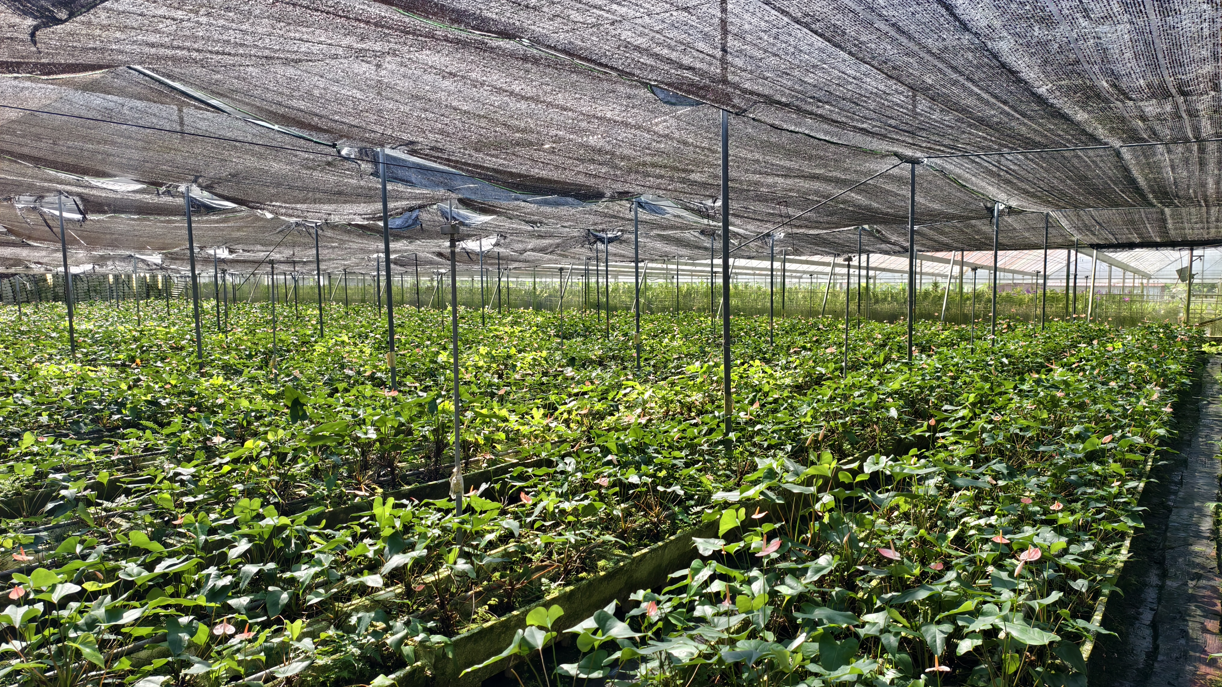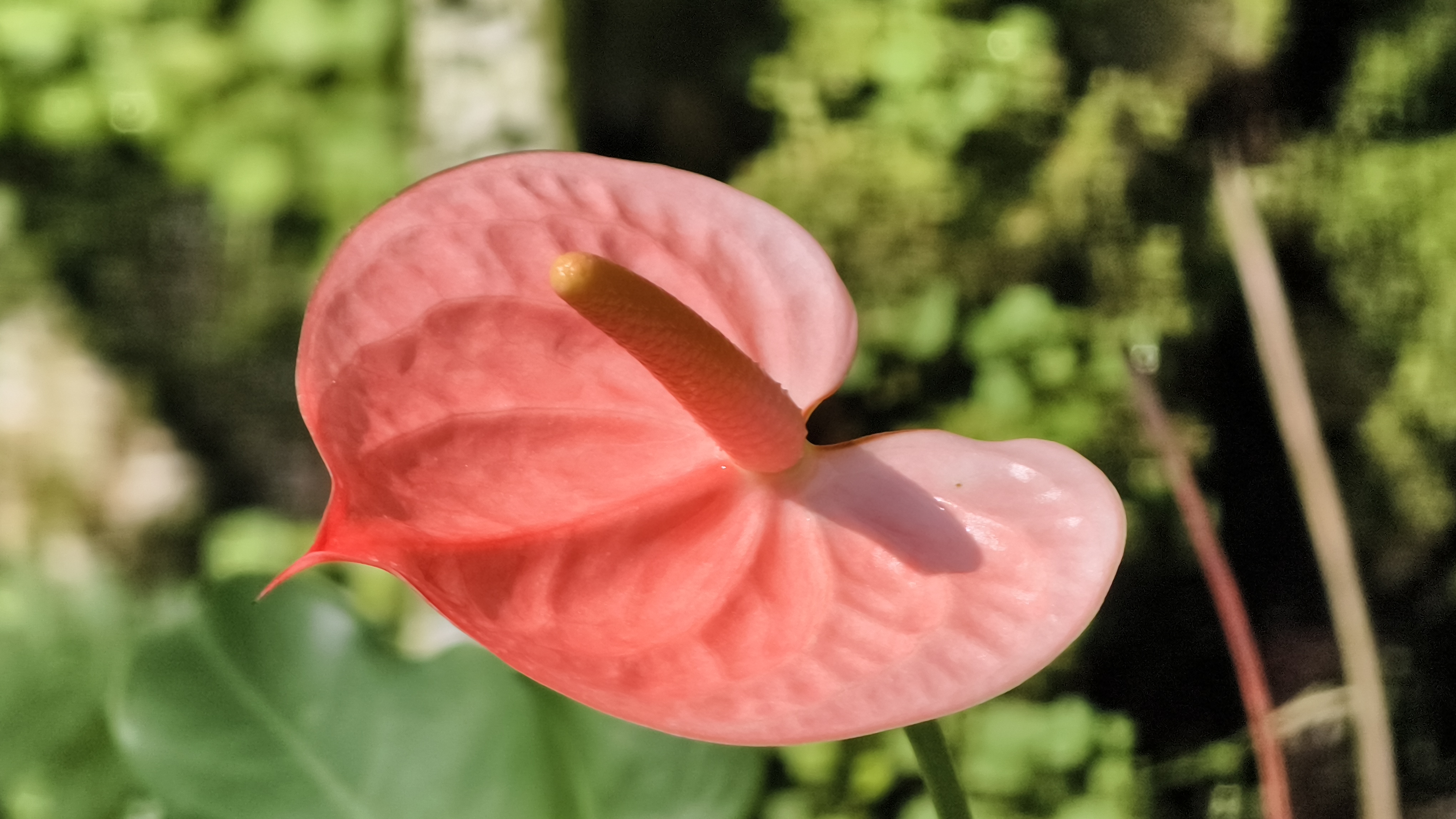 火鶴花那宛如愛心的花形,粉嫩細緻又帶著自然的光澤,不僅外型浪漫討喜,也是台灣主要的觀賞花卉之一,花語象徵熱情與好客,難怪能成為農園裡最吸睛的焦點。