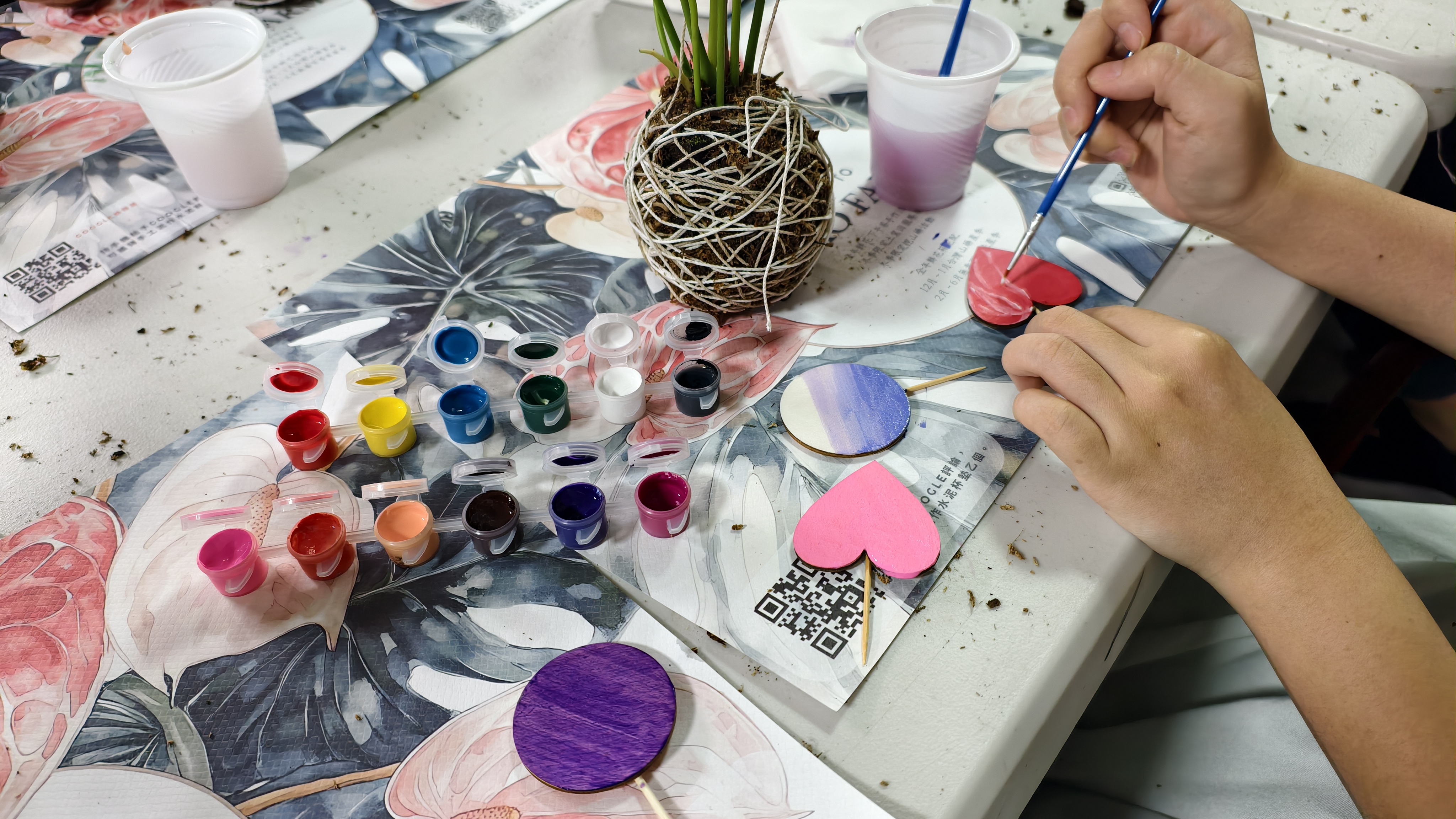 接著我們走進手作工坊,體驗別具特色的「火鶴花水苔球」製作,看似簡單的步驟,其實需要專注與巧手才能完成;當最後綁好那一刻,滿滿的成就感油然而生。更有趣的是,還能親手彩繪小木牌,讓每顆苔球都成為獨一無二的作品,把專屬於內門的美好回憶一併帶回家。