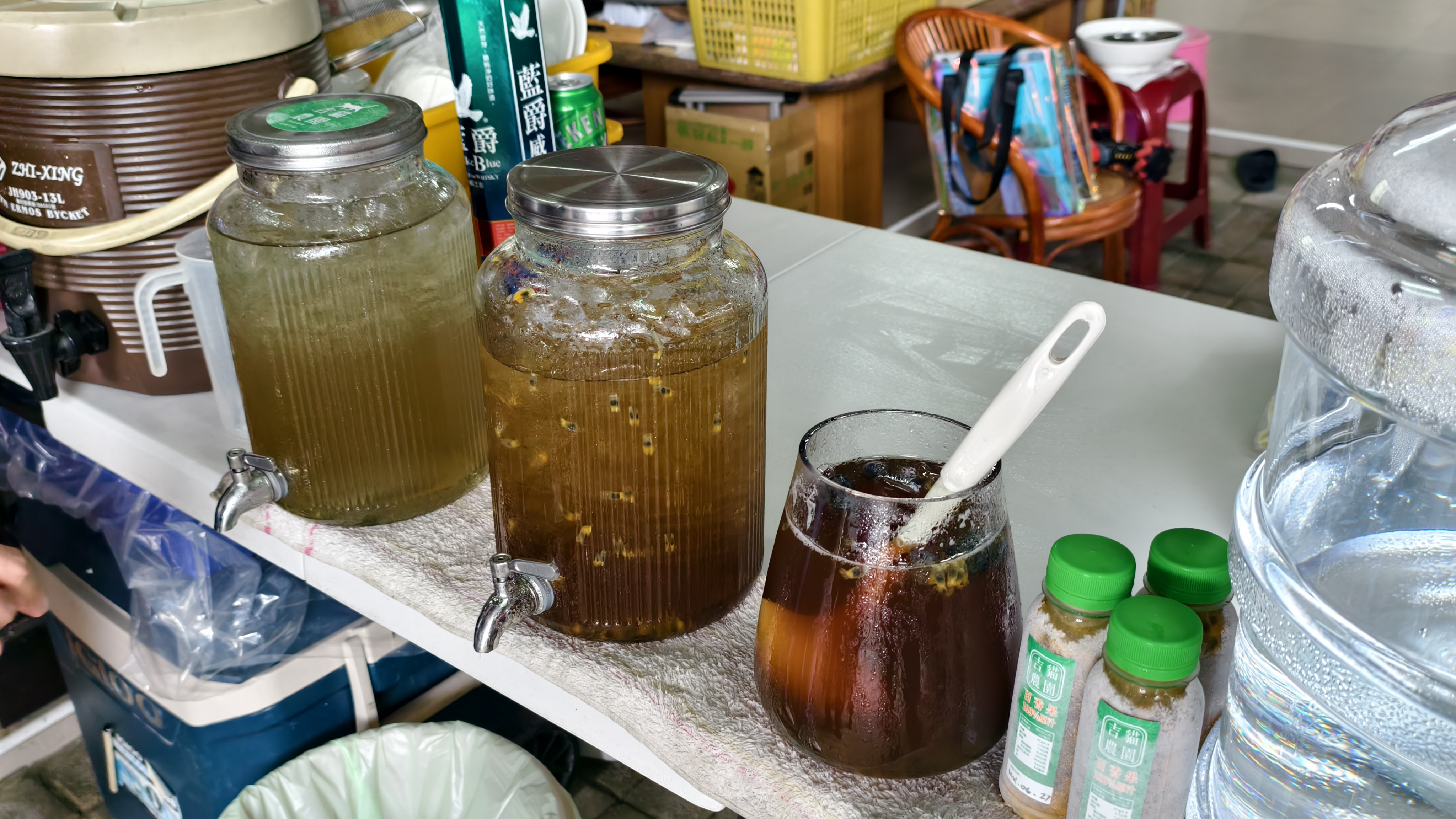 一旁還貼心準備了各式特調飲品,繽紛又清爽,搭配料理一起享用更添風味,也為這場山間饗宴增添了幾分悠閒感。
