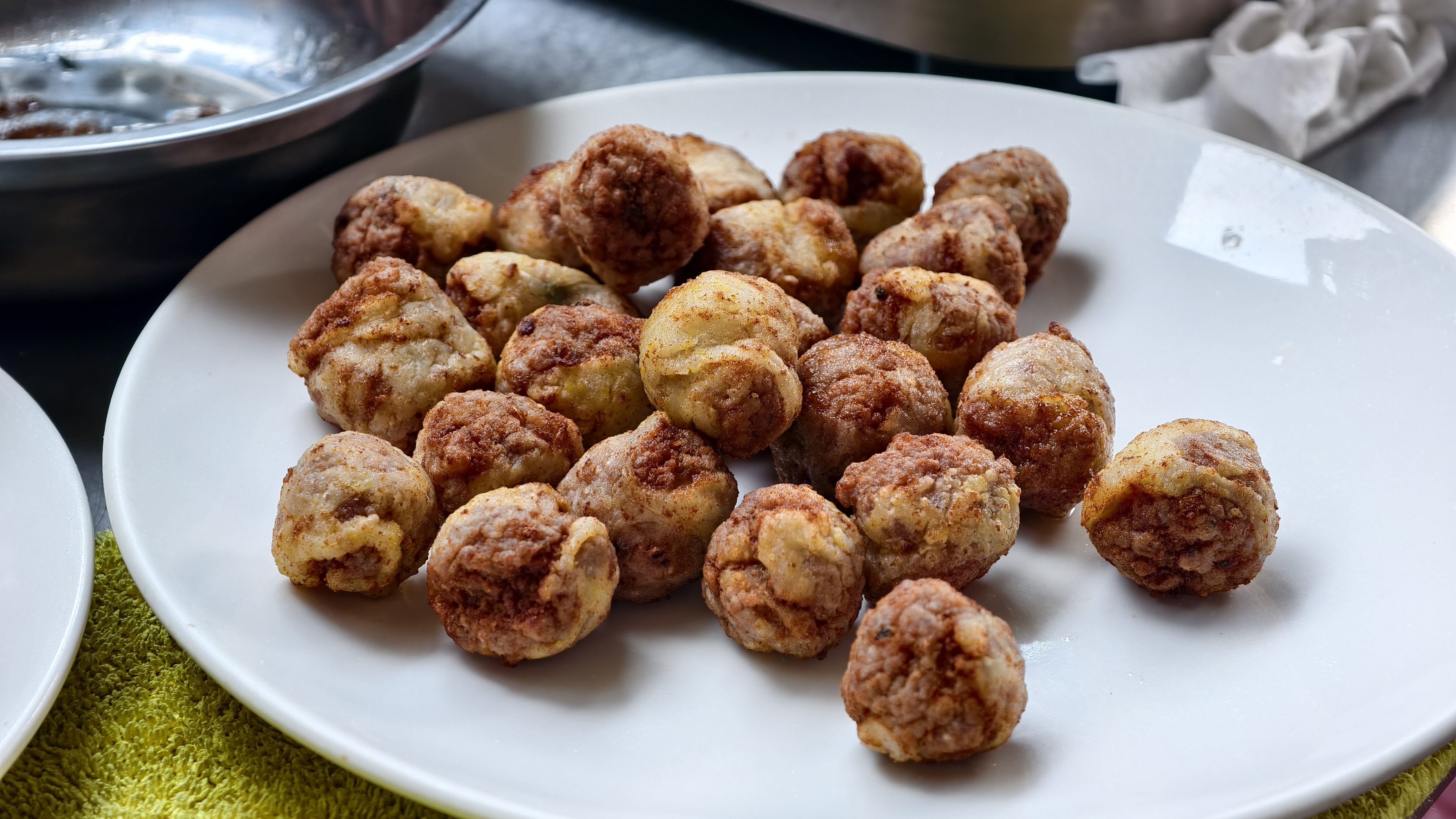 最後,金黃酥脆的八寶丸終於出爐,外皮酥香、內餡紮實多汁,看起來就讓人食指大動,迫不及待想大快朵頤。