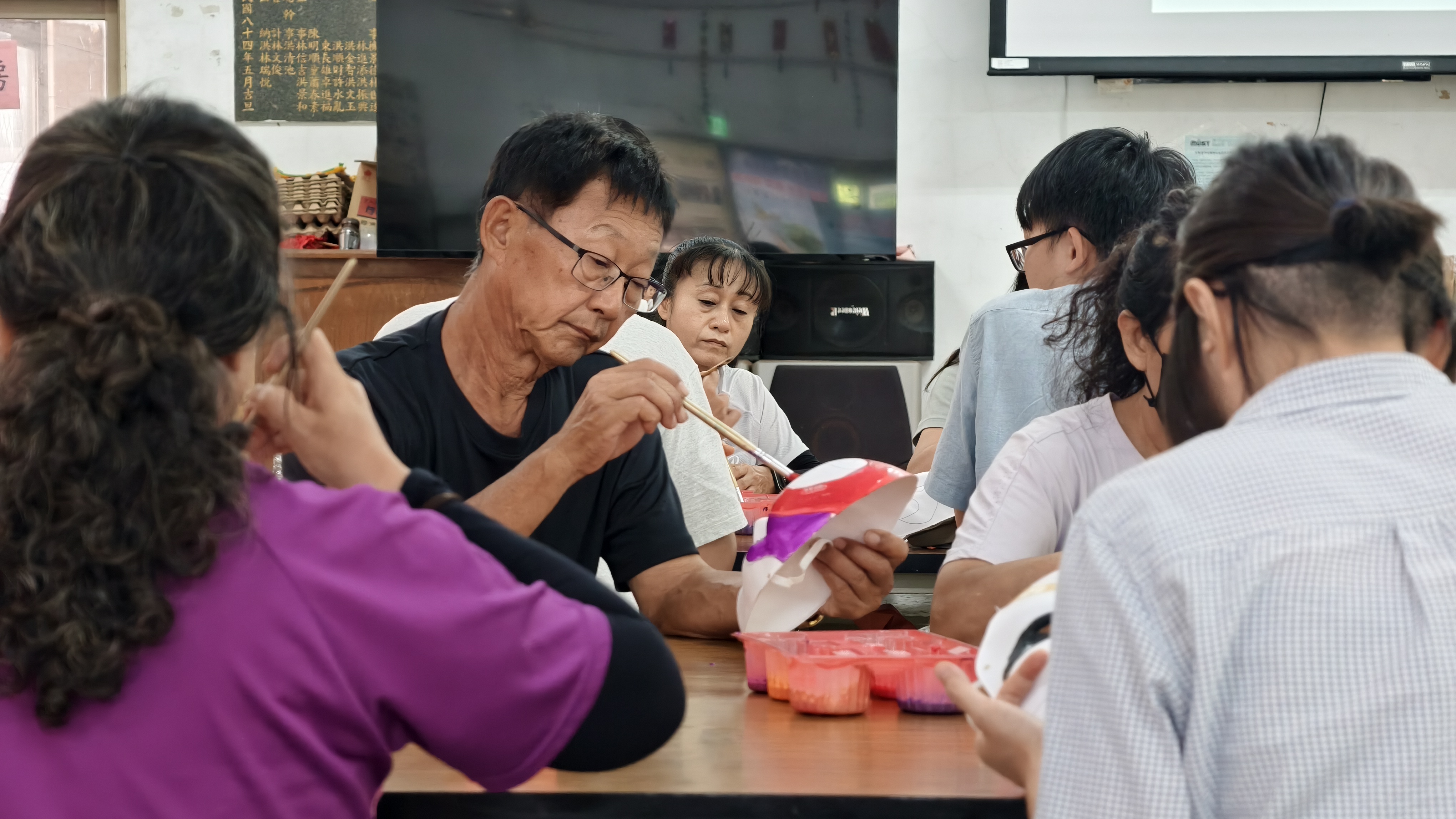 午餐過後,我們前往下一站「三平里活動中心」,展開有趣的手繪臉譜體驗。黃緯中老師先為大家講解平埔文化與宋江陣的歷史背景,接著大家親手拿起畫筆,為臉譜仔細上色。邊動手創作的同時,還能認識《水滸傳》中的英雄人物,不僅好玩,還增添了許多文化知識。