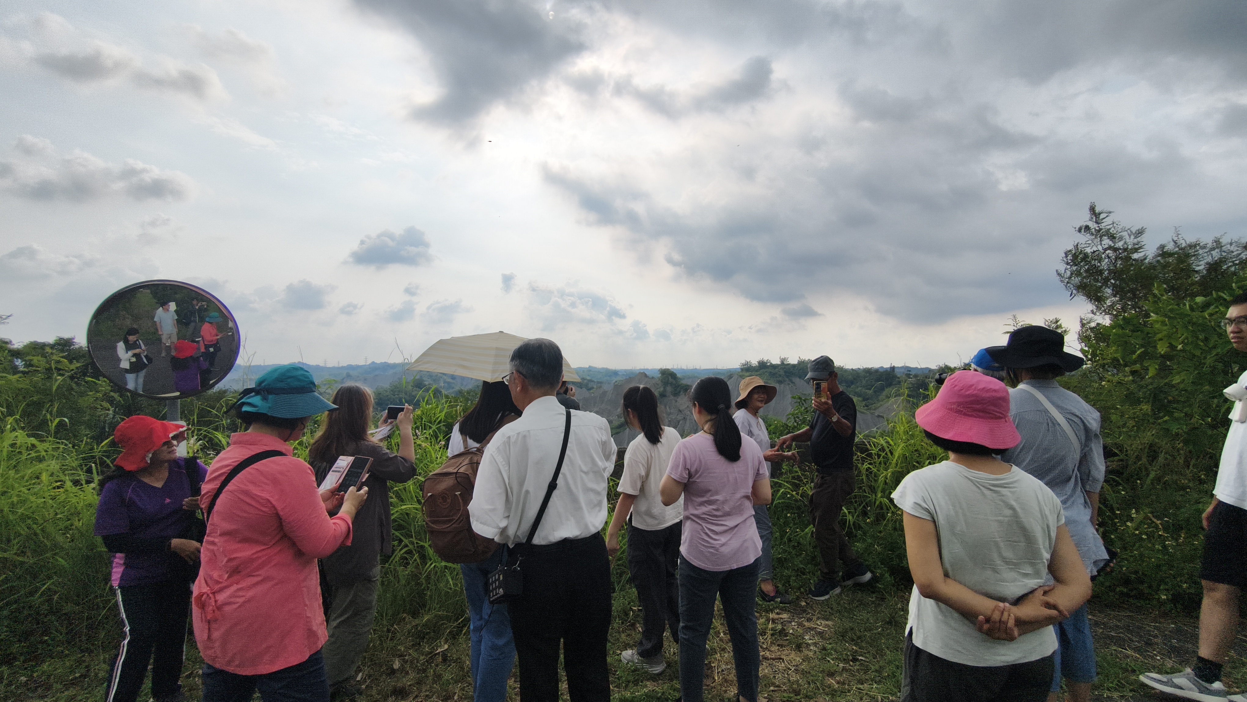大家聚在一起,抬頭欣賞這片奇特的惡地地形「尪仔上天」,壯觀的景象讓人驚呼連連,也深刻感受到大自然的鬼斧神工。